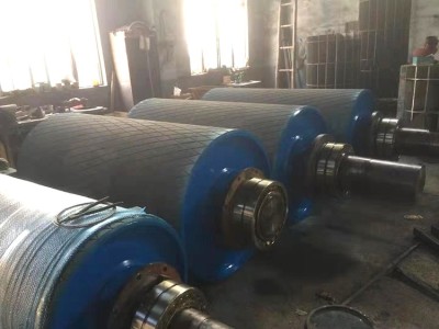 2、如果从外形这一方面来分的话是可以分为鼓形古铜、叶片式滚筒、沟槽胶面滚筒这三种类型的。其中鼓形滚筒是使用钢板卷圆焊接制作出来的,一般中间位置的直径是会比两边的直径更大一些的,这样的滚筒在进行使用的时候可以很好的避免输送带出现跑偏的情况。还有一种叶片式滚筒是由很多横向叶片组合而成的,这一种滚筒在进行使用的时候主要起到的作用就是清洁输送带。